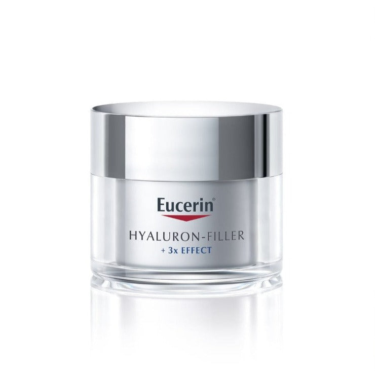 Fills. Stimulates. Defends. Eucerin Hyaluron-Filler Day Cream dry skin contains a unique combination of short- and long-chained Hyaluronic acid to penetrate and plump up wrinkles from within plus bio-active Glycine-saponin to further stimulate the skin's own natural production of Hyaluronic acid, improving moisture retention levels and smoothing wrinkles from within. Made with SPF 15 with UVA protection to prevent premature ageing. Creates an ideal make-up base.